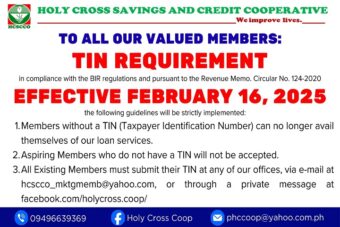More Details ›REMINDERS TO ALL OUR VALUED MEMBERSIn compliance with BIR regulations and Revenue Memorandum Circular No. 124-2020, please be informed of the following guidelines effective